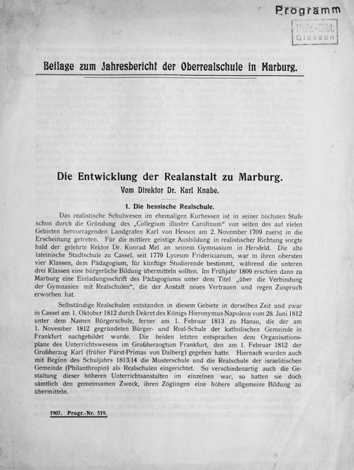 Die Entwicklung der Realanstalt zu Marburg / vom ... Karl Knabe