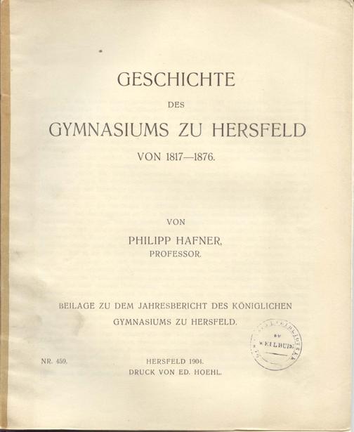 Geschichte des Gymnasiums zu Hersfeld von 1817 - 1876 / von Philipp Hafner