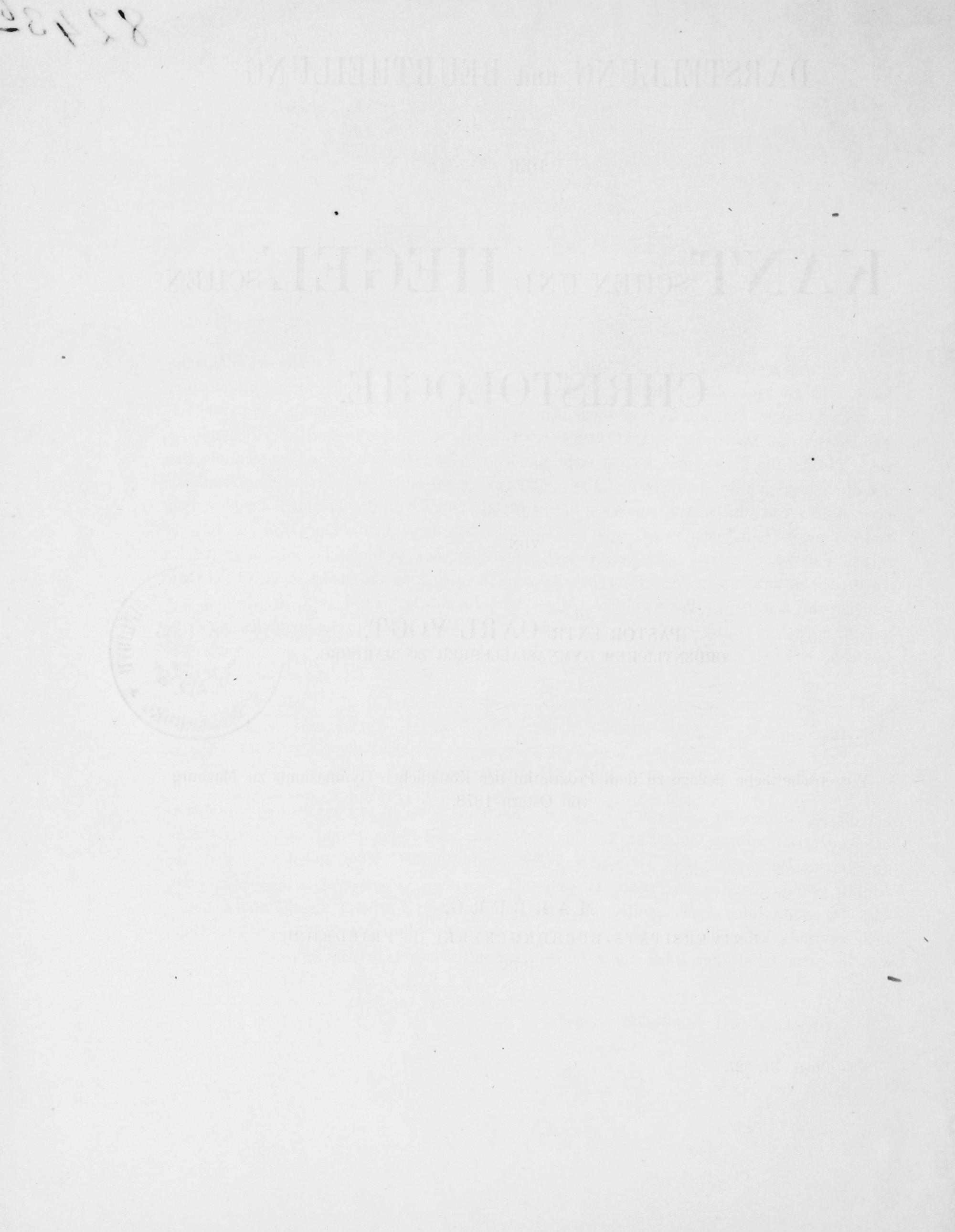 Darstellung und Beurtheilung der Kant'schen und Hegel'schen Christologie / Carl Vogt