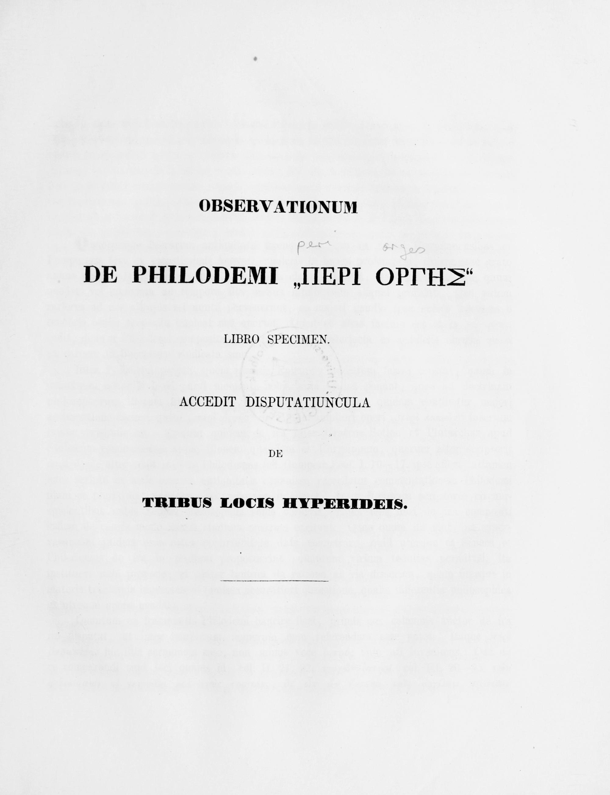 Observationum De Philodemi "ΠΕΡΙ ΟΡΓΗΣ" libro specimen