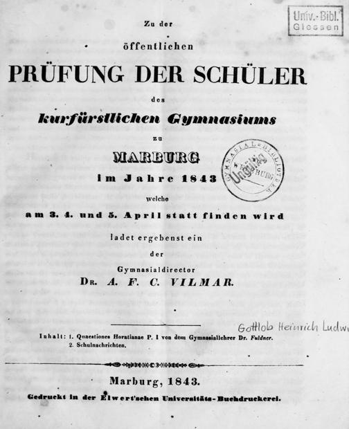 Zu der öffentlichen Prüfung der Schüler des Kurfürstlichen Gymnasiums zu Marburg im Jahre ... ladet ergebenst ein der Gymnasialdirector
