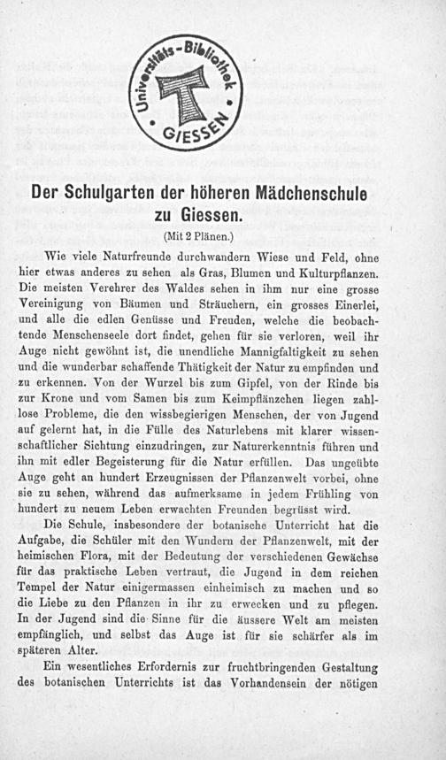 Der Schulgarten der höheren Mädchenschule zu Giessen