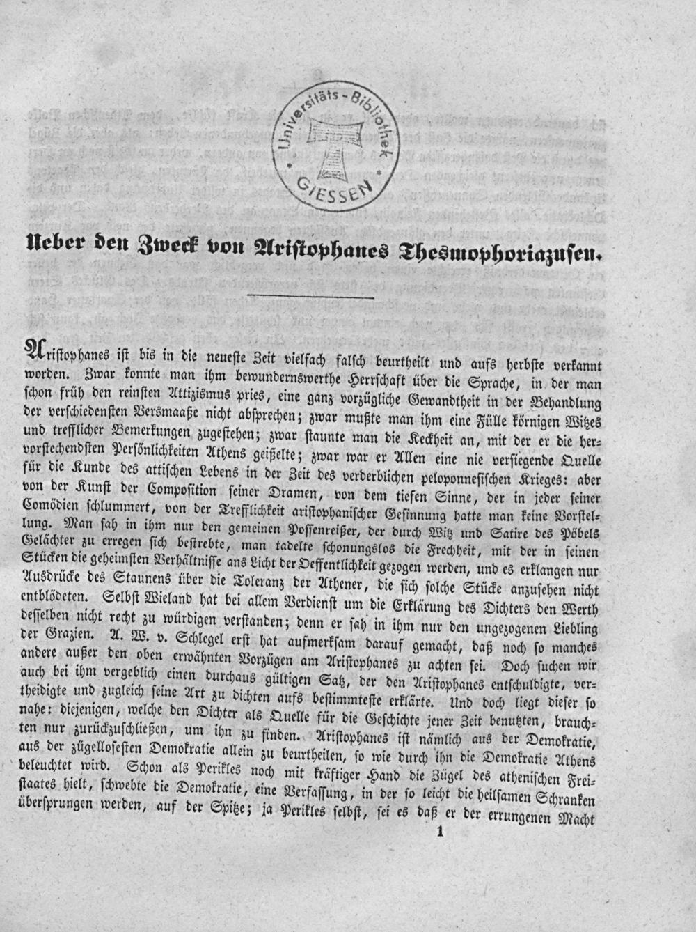 Über den Zweck von Aristophanes Thesmophoriazusen / Julius Zastra