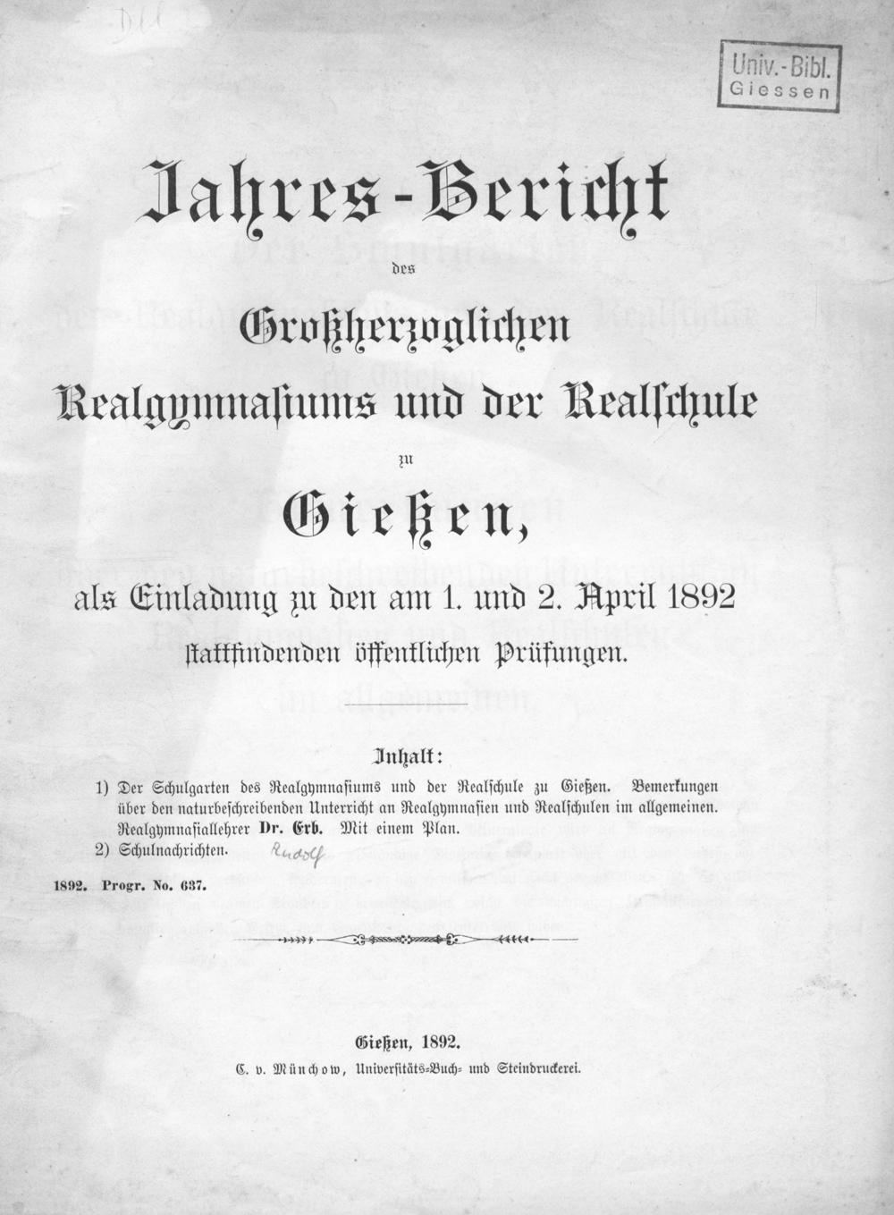 Jahres-Bericht des Großherzoglichen Realgymnasiums und der Realschule zu Gießen