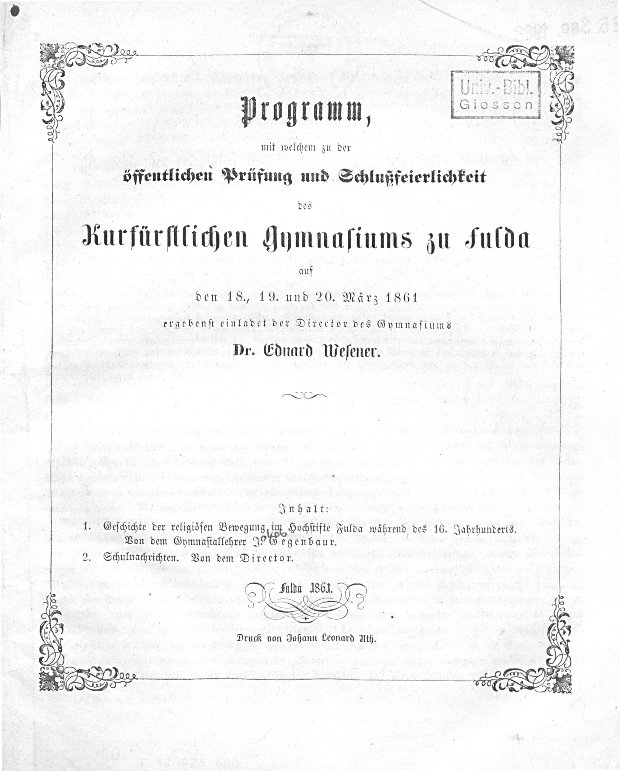 Geschichte der religiösen Bewegung im Hochstifte Fulda während des 16. Jahrhunderts / von J. Gegenbaur