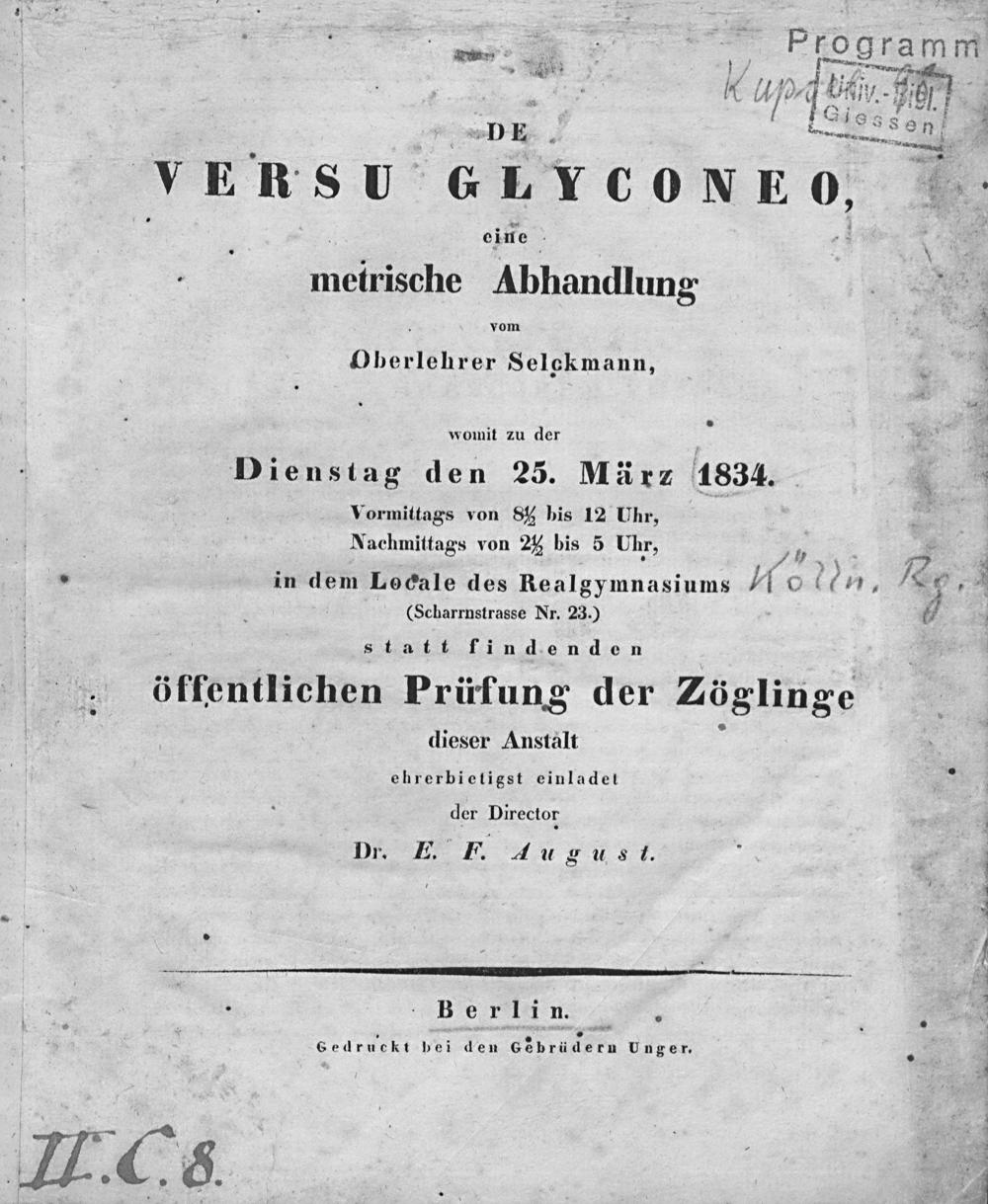 De versu glyconeo, eine metrische Abhandlung / von [Leopold H. J.] Selckmann