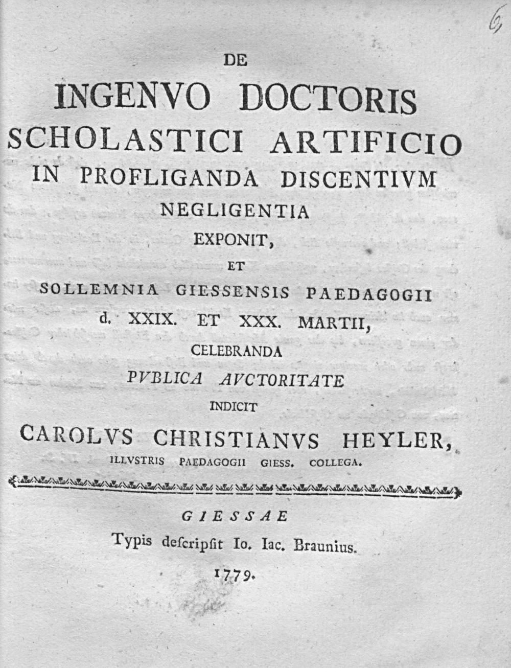 De ingenuo doctoris scholastici artificio in profliganda discentium / Karl Christian Heyler