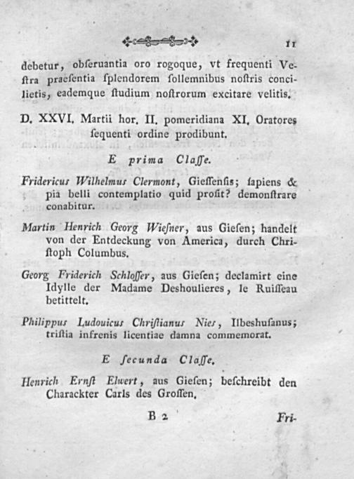 Alumnis suis utilitatem studii historici commendat / Johann Jakob Ludwig Borck