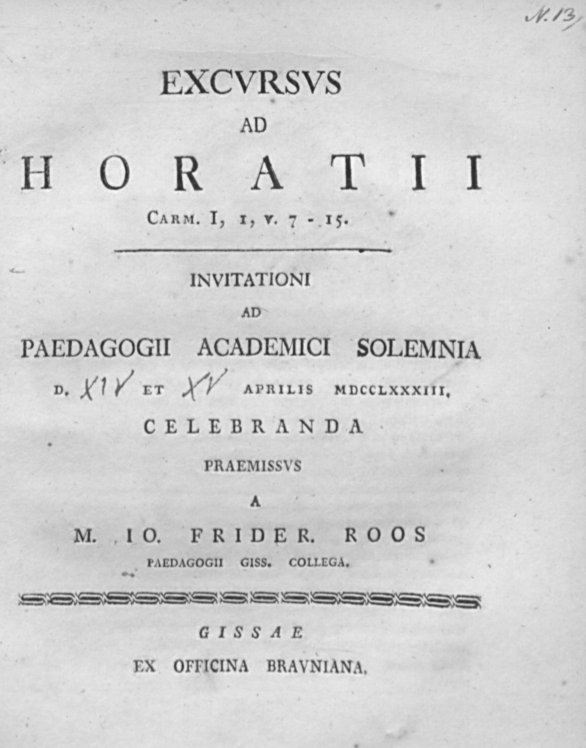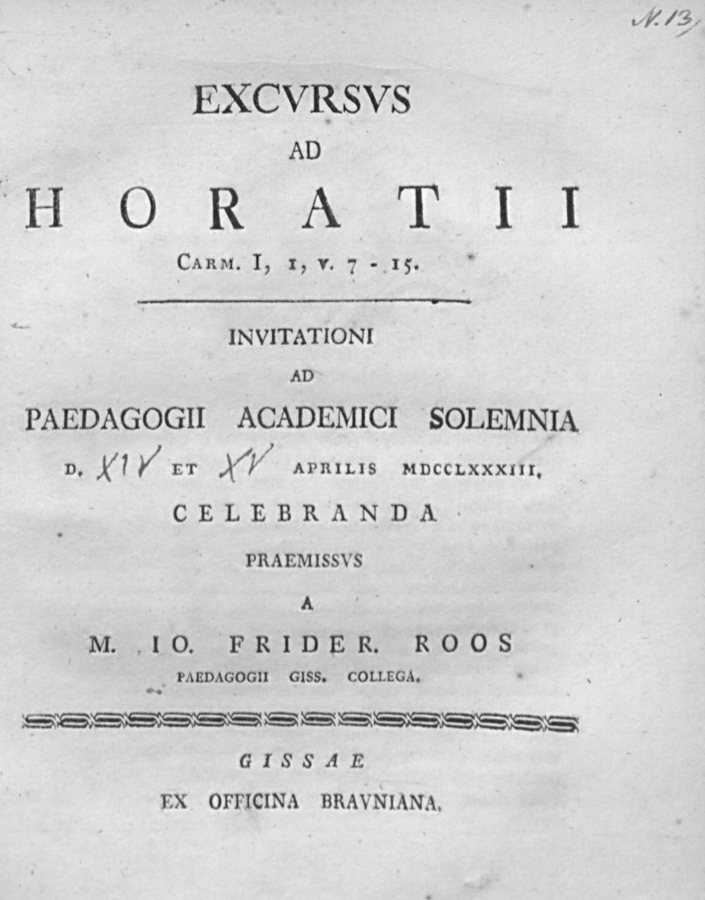 Excursus ad Horatii. Carm. I, 1, v. 7-15 / Johann Friedrich Roos