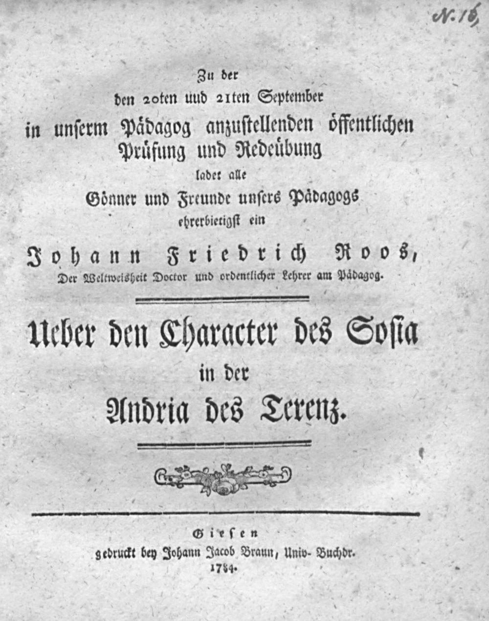 Über den Charakter des Sosia in der Andria des Terenz / Johann Friedrich Roos