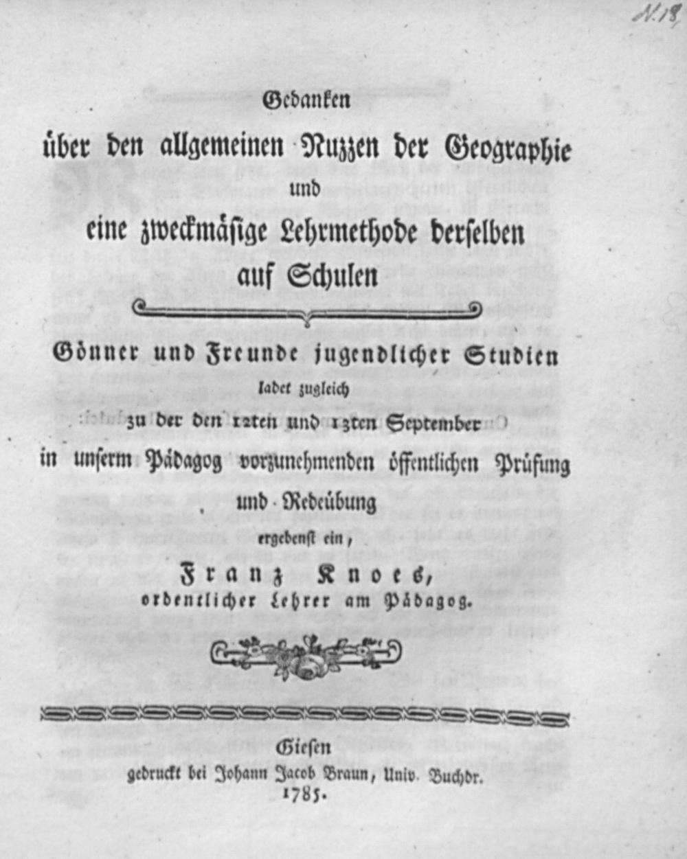 Gedanken über den allgemeinen Nuzzen der Geographie und eine zweckmäßige Lehrmethode derselben auf Schulen / Franz Knoes