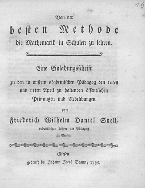 Von der besten Methode, die Mathematik in Schulen zu lehren / Friedrich Wilhelm Daniel Snell