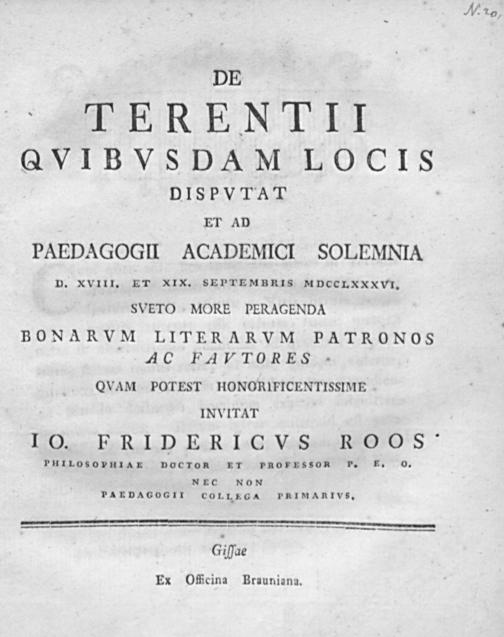 De Terentii quibusdam locis disputat / Io. Fridericus Roos