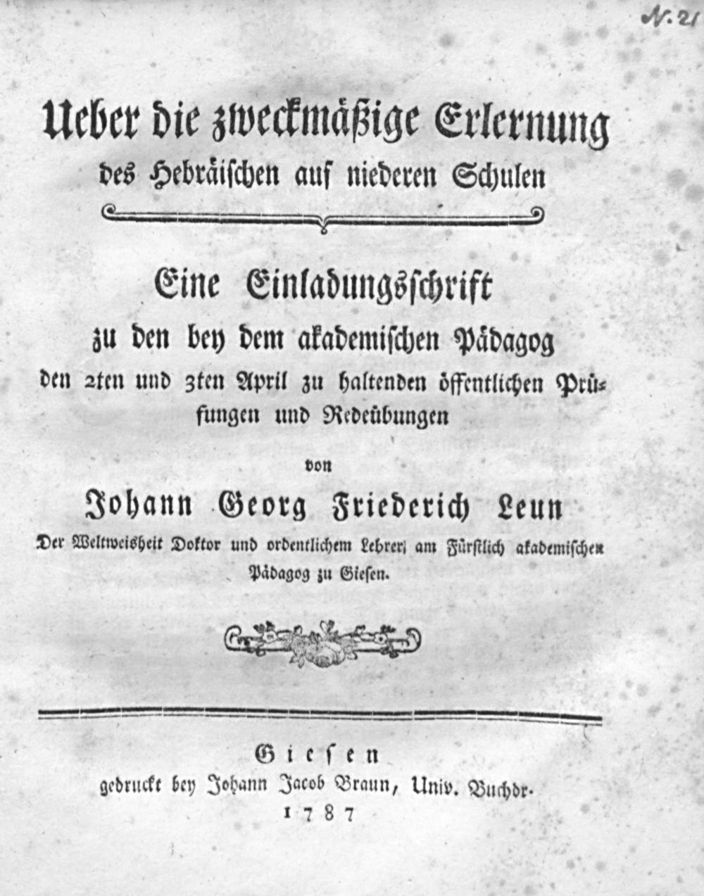 Über die zweckmäßige Erlernung des Hebräischen auf niederen Schulen / Johann Georg Friedrich Leun