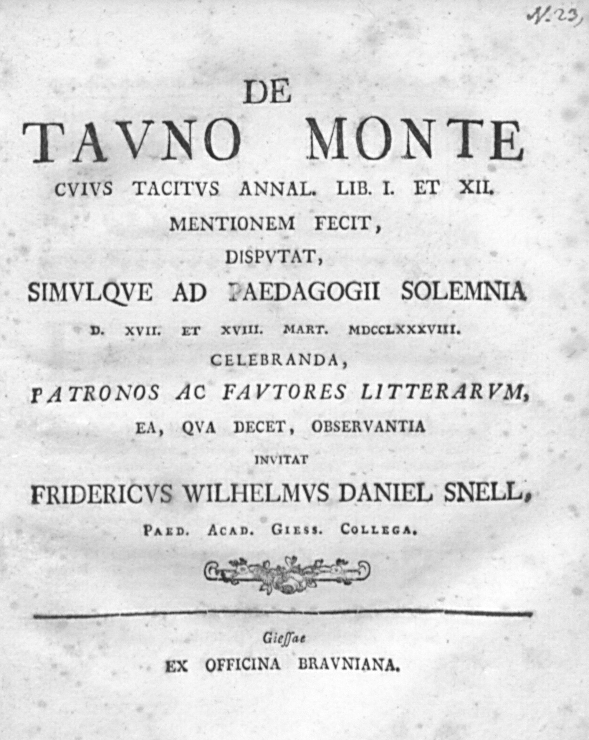 De Tauno monte, cujus Tacitus annal. lib. I. et XII. mentionem fecit / Friedrich Wilhelm Daniel Snell