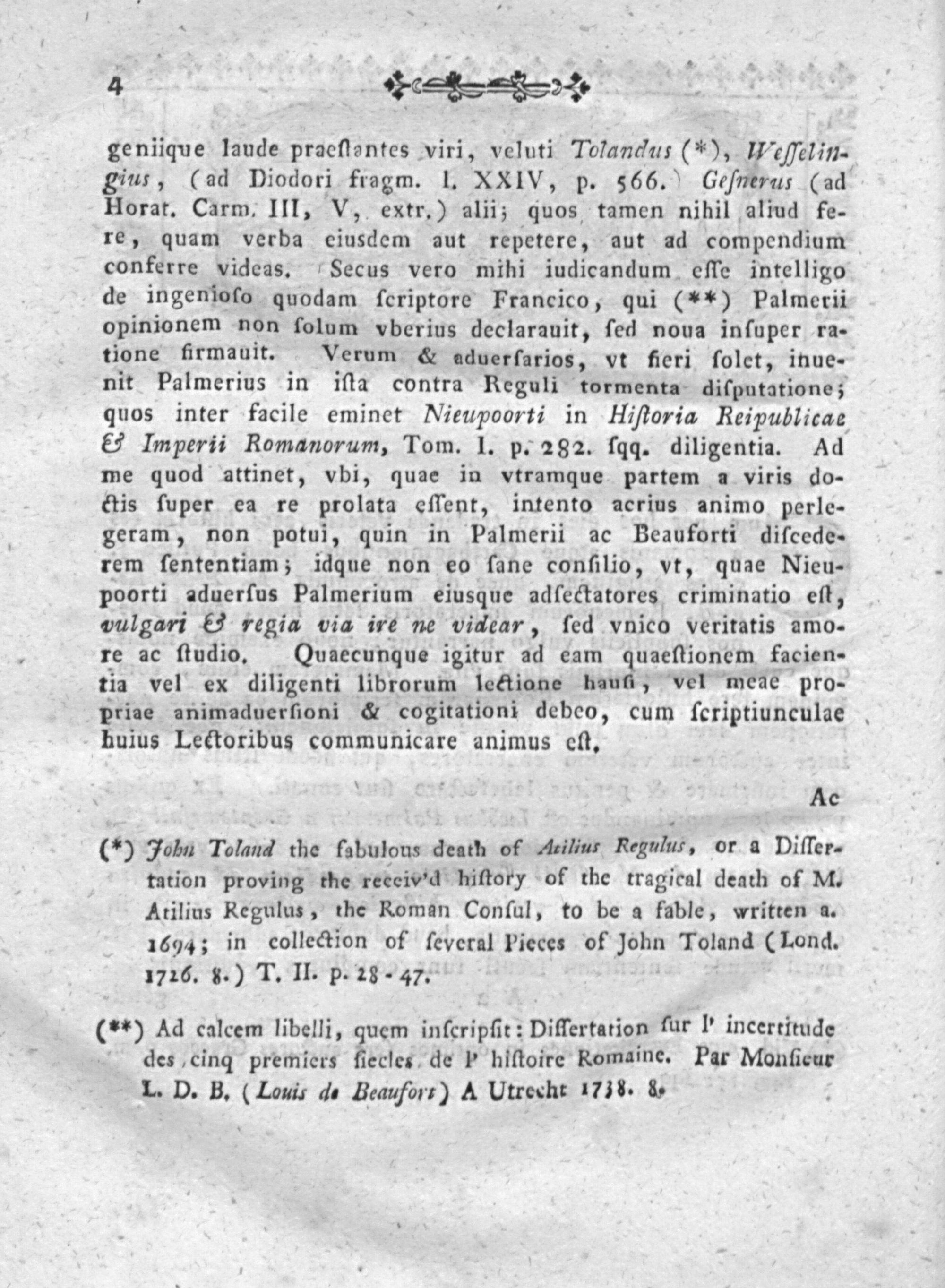 De suppliciis quibus M. Atilius Regulus Carthagine traditur interfectus / Johann Friedrich Roos