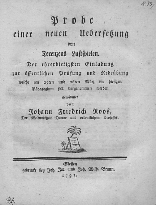 Probe einer neuen Übersetzung von Terenzens Lustspielen / Johann Friedrich Roos