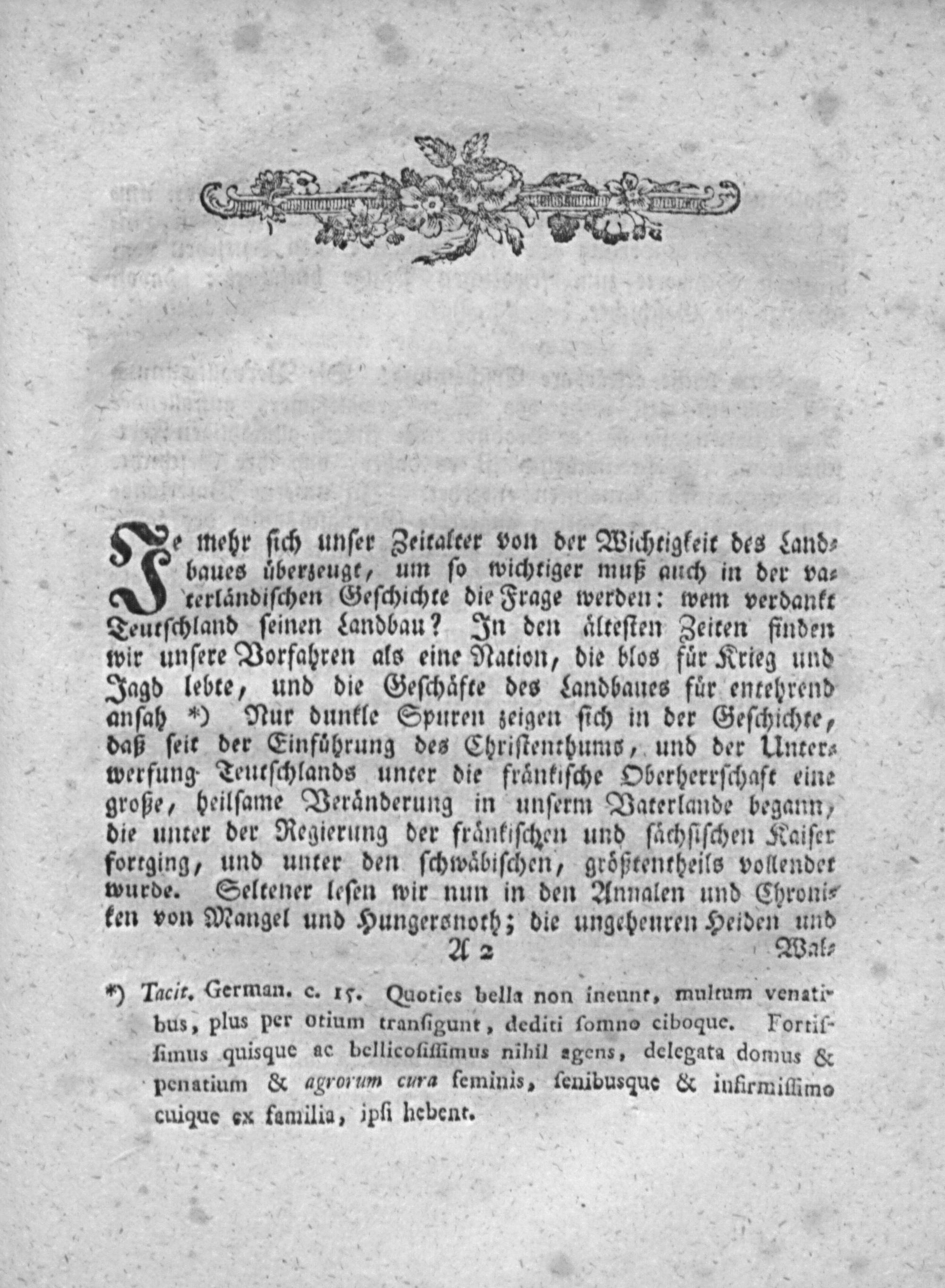 Einige Bemerkungen zur ältern Geschichte des Ackerbaues in Teutschland