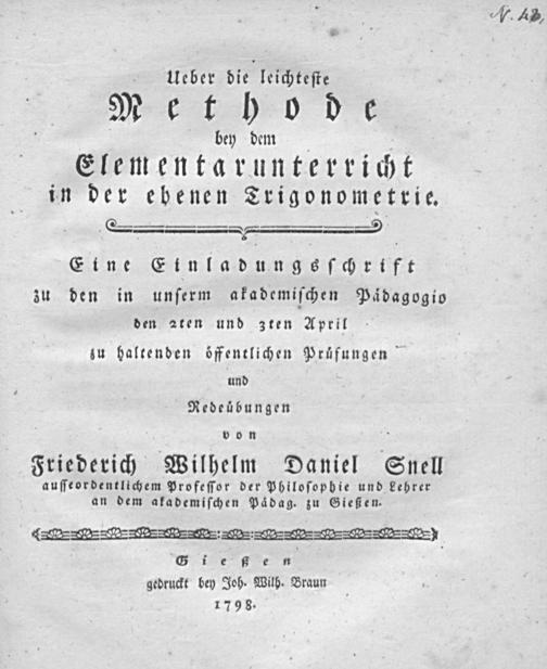 Über die leichteste Methode bey dem Elementarunterricht in der ebenen Trigonometrie / Friederich Wilhelm Daniel Snell