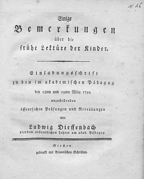 Einige Bemerkungen über die frühe Lektüre der Kinder / Ludwig Dieffenbach