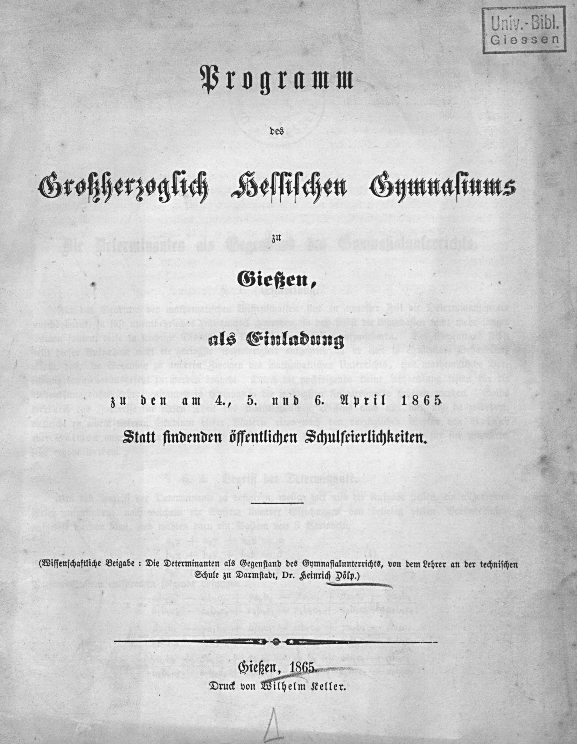 Programm des Großherzoglich-Hessischen Gymnasiums zu Gießen