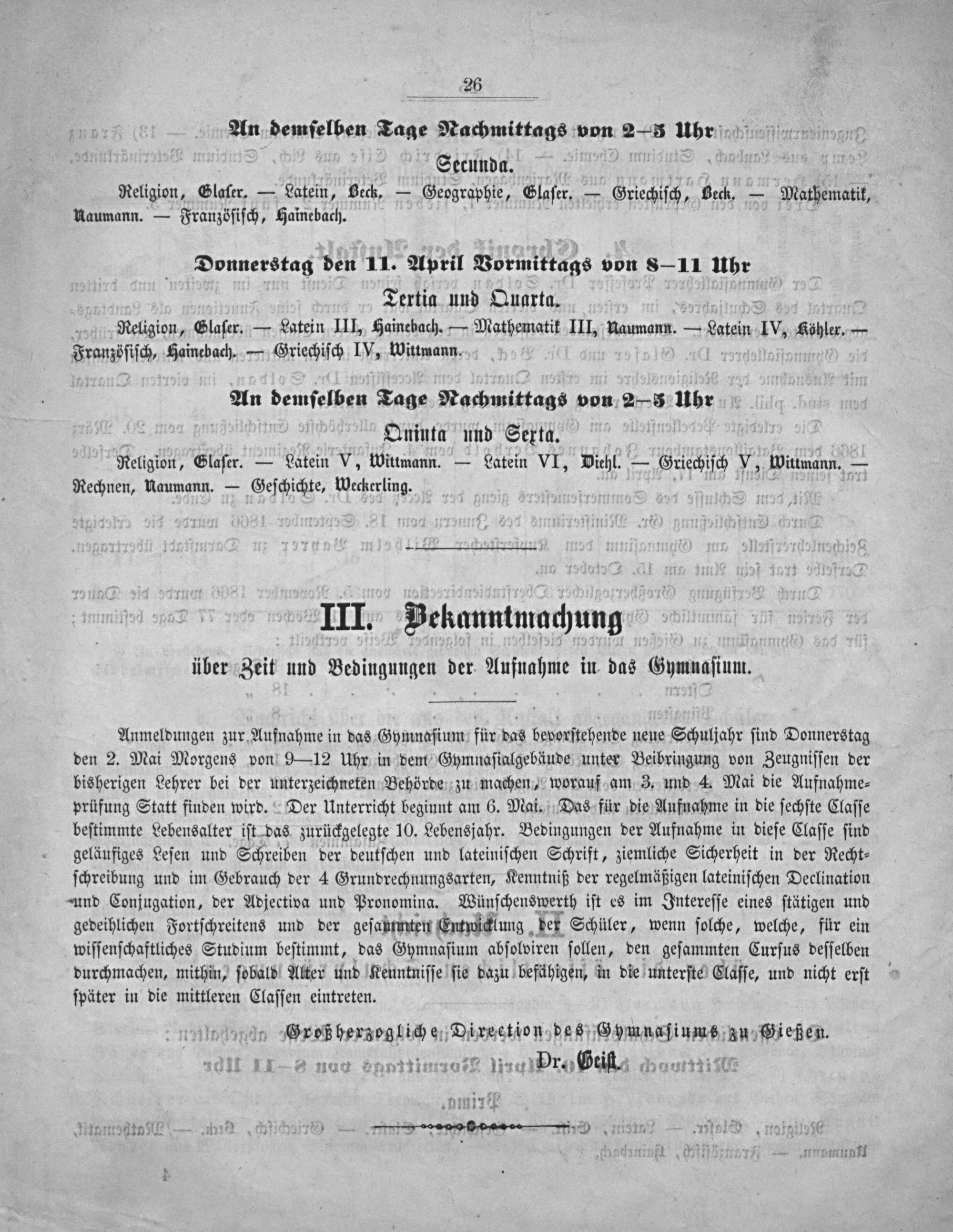 Programm des Großherzoglich-Hessischen Gymnasiums zu Gießen
