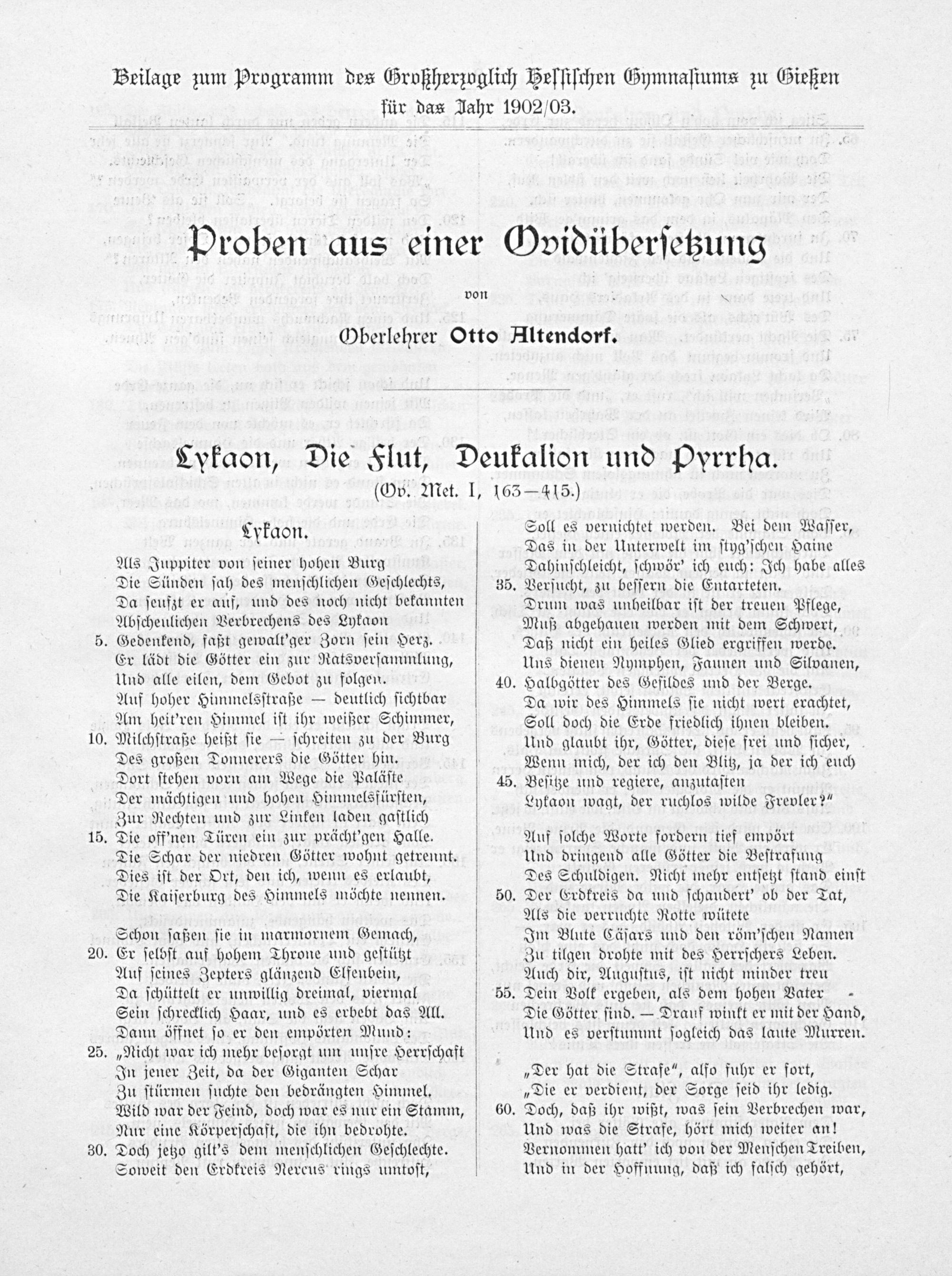 Proben aus einer Ovidübersetzung / Otto Altendorf