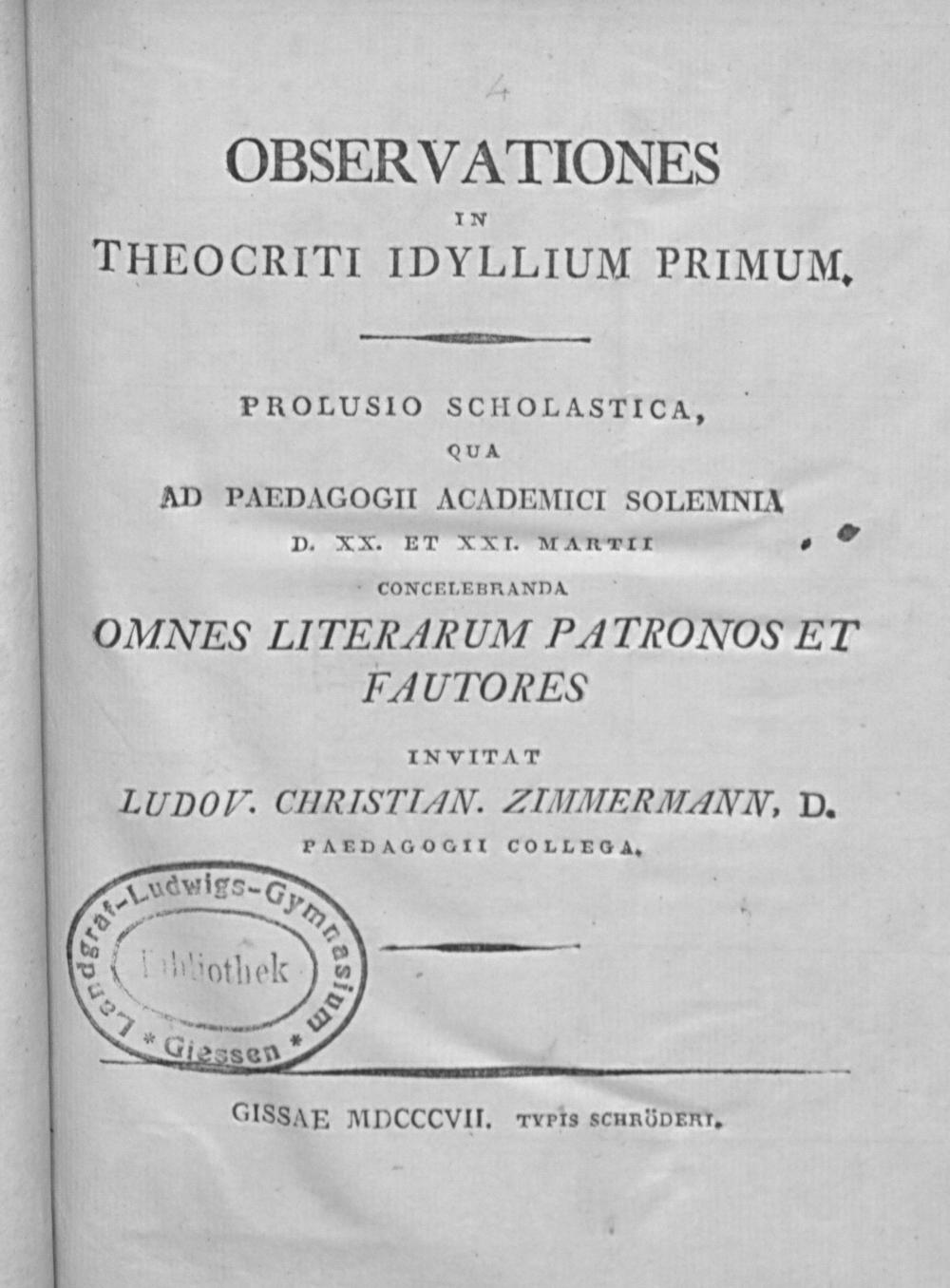 Observationes in Theocriti idyllium primum / Ludwig Christian Zimmermann