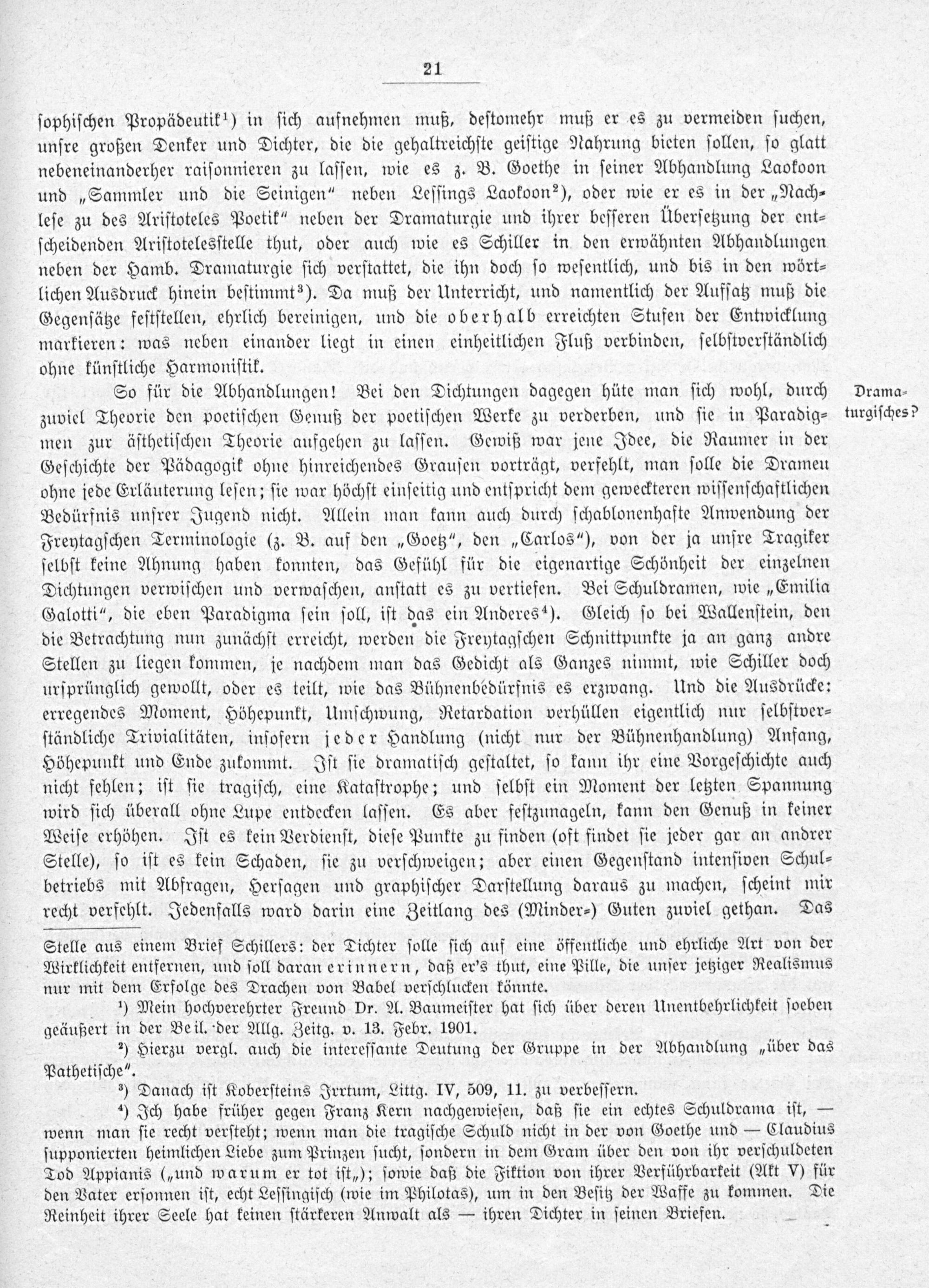 Immanente Parallelbehandlung des Goethe- und Schiller-Stoffes in Oberprima / Ludwig Schaedel