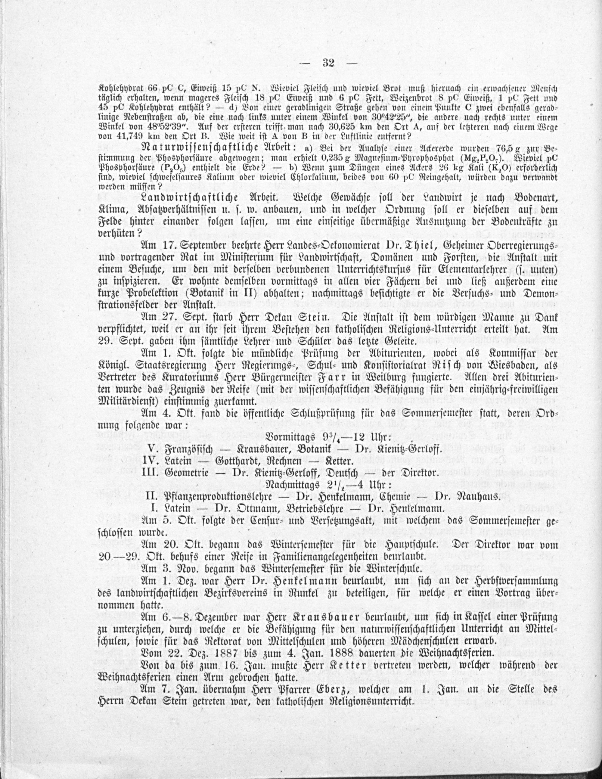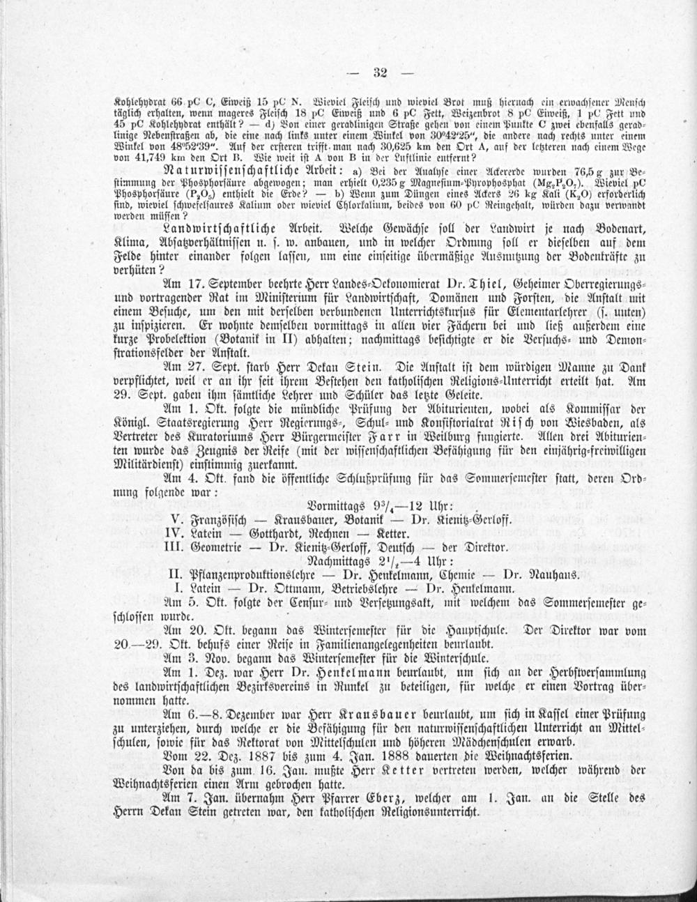 Programm der Landwirtschaftsschule zu Weilburg an der Lahn, mit welchem über das Schuljahr ... berichtet