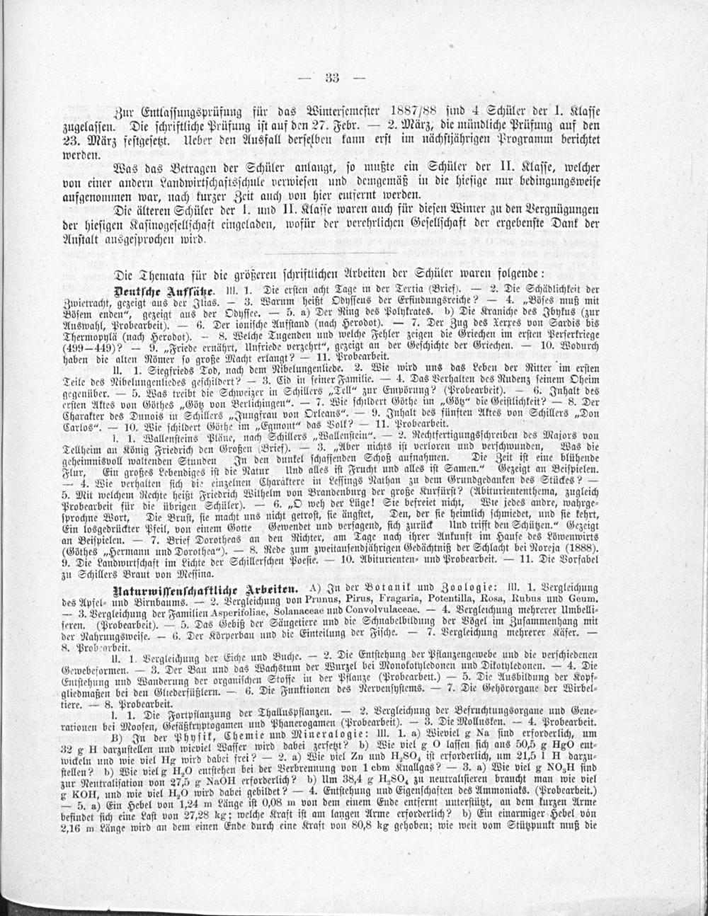 Programm der Landwirtschaftsschule zu Weilburg an der Lahn, mit welchem über das Schuljahr ... berichtet