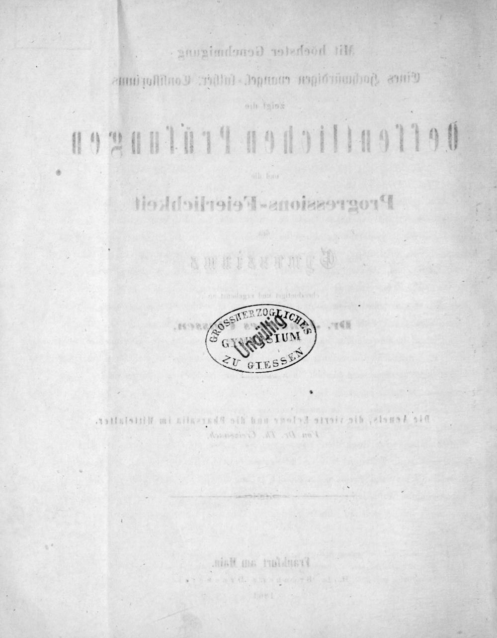 Mit Genehmigung eines hochw. evangel.-luther. Consistoriums zeigt die oeffentlichen Prüfungen und die Progressions-Feierlichkeit des Gymnasiums ehrerbietigst und ergebenst an