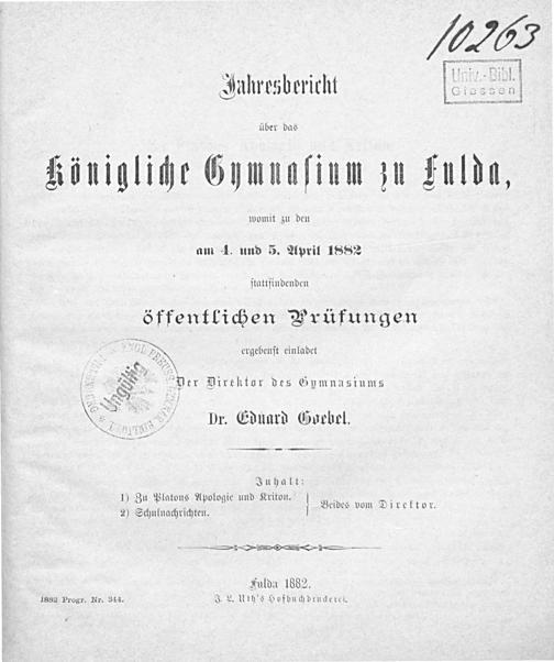 Zu Platons Apologie und Kriton / Eduard Goebel