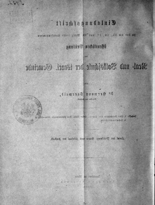 Einladungsschrift zu der am ... stattfindenden öffentlichen Prüfung der Real- und Volksschule der Israelitischen Gemeinde zu Frankfurt am Main