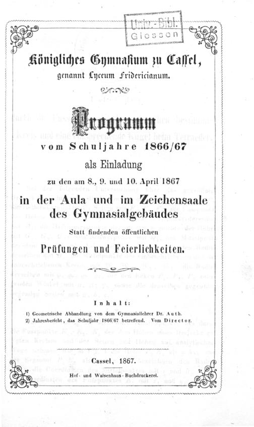 Geometrische Abhandlung [über den durch die Fußpunkte der Dreieckshöhen bestimmten Kreis und eine entsprechende Kugel beim Tetraeder] / von Auth