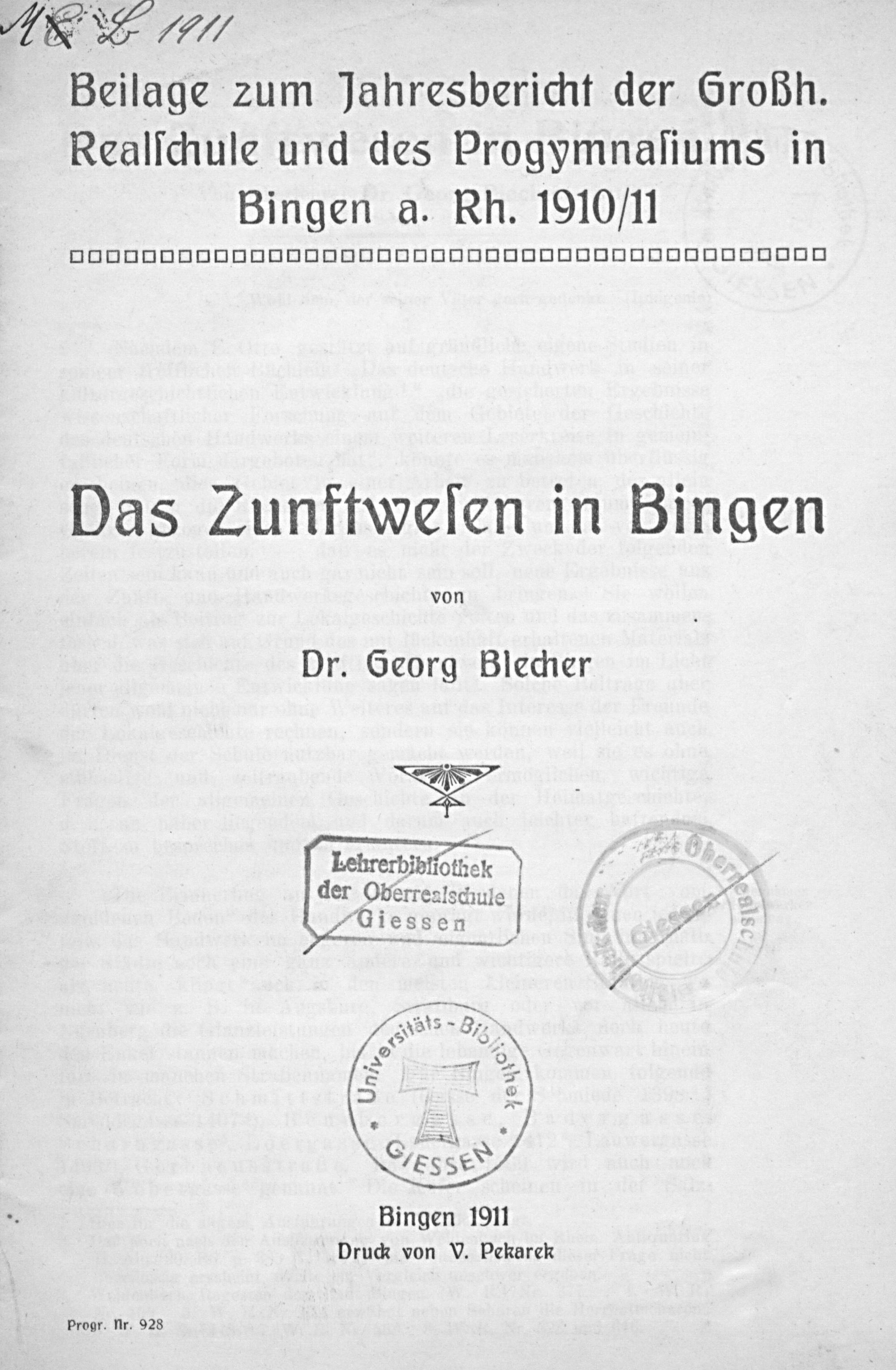 Das Zunftwesen in Bingen