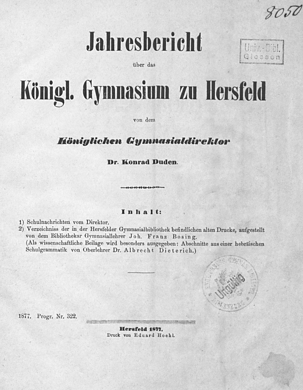 Jahresbericht über das Königliche Gymnasium zu Hersfeld