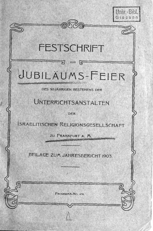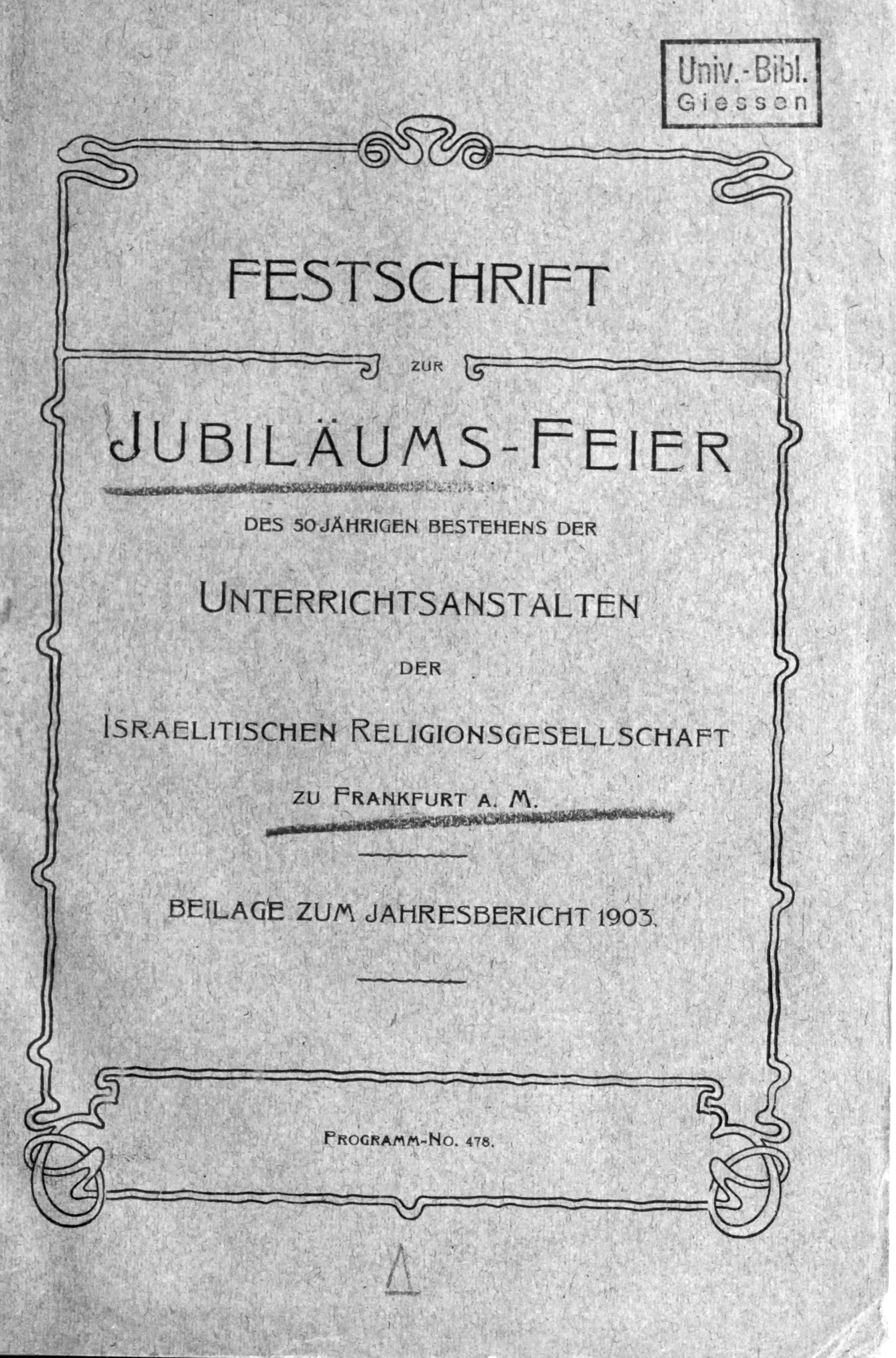 Festschrift zur Jubiläums-Feier des 50jährigen Bestehens der Unterrichtsanstalten der Israelitischen Religionsgesellschaft zu Frankfurt a.M. 1903