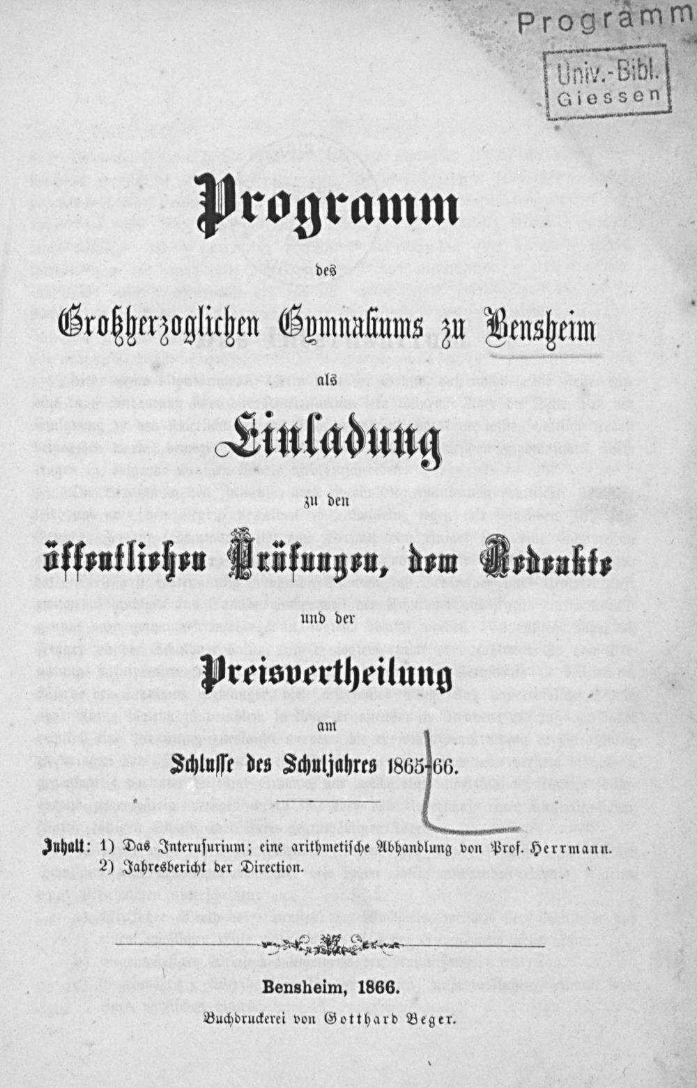 Jahresbericht des Gymnasiums zu Bensheim