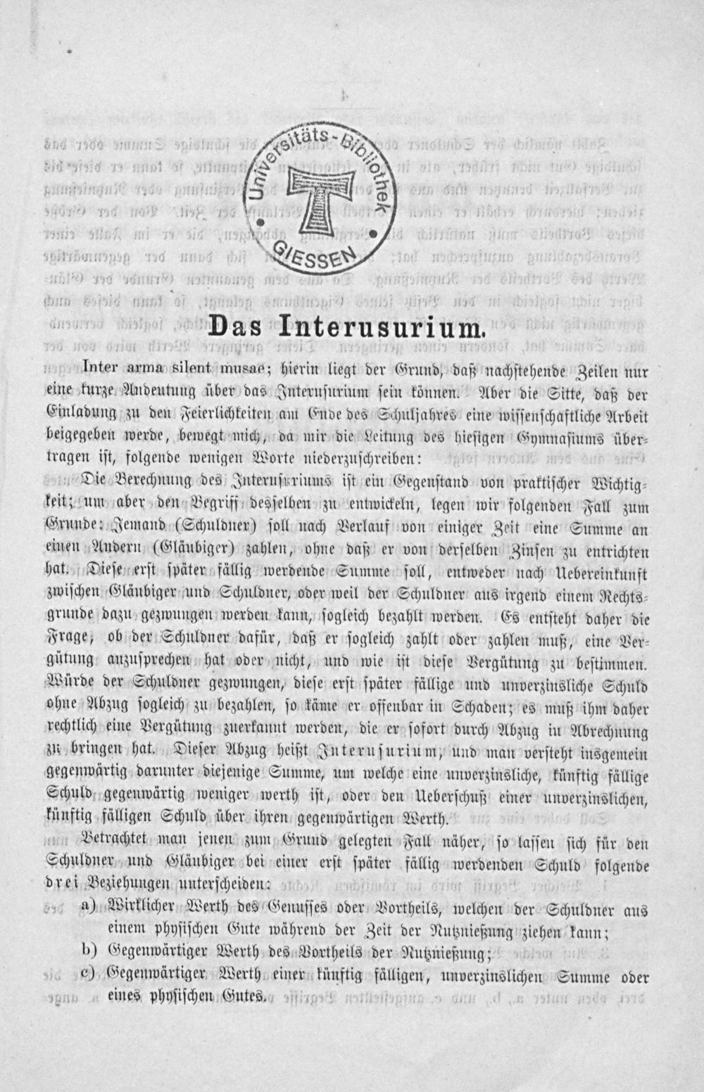 Das Interusurium. Eine arithmetische Abhandlung