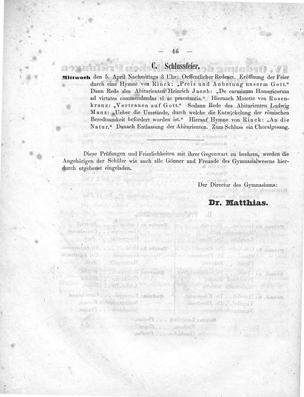 Einladungsschrift zu den am ... im Hörsaal des Gymnasiums statt findenden Prüfungen und Schulfeierlichkeiten