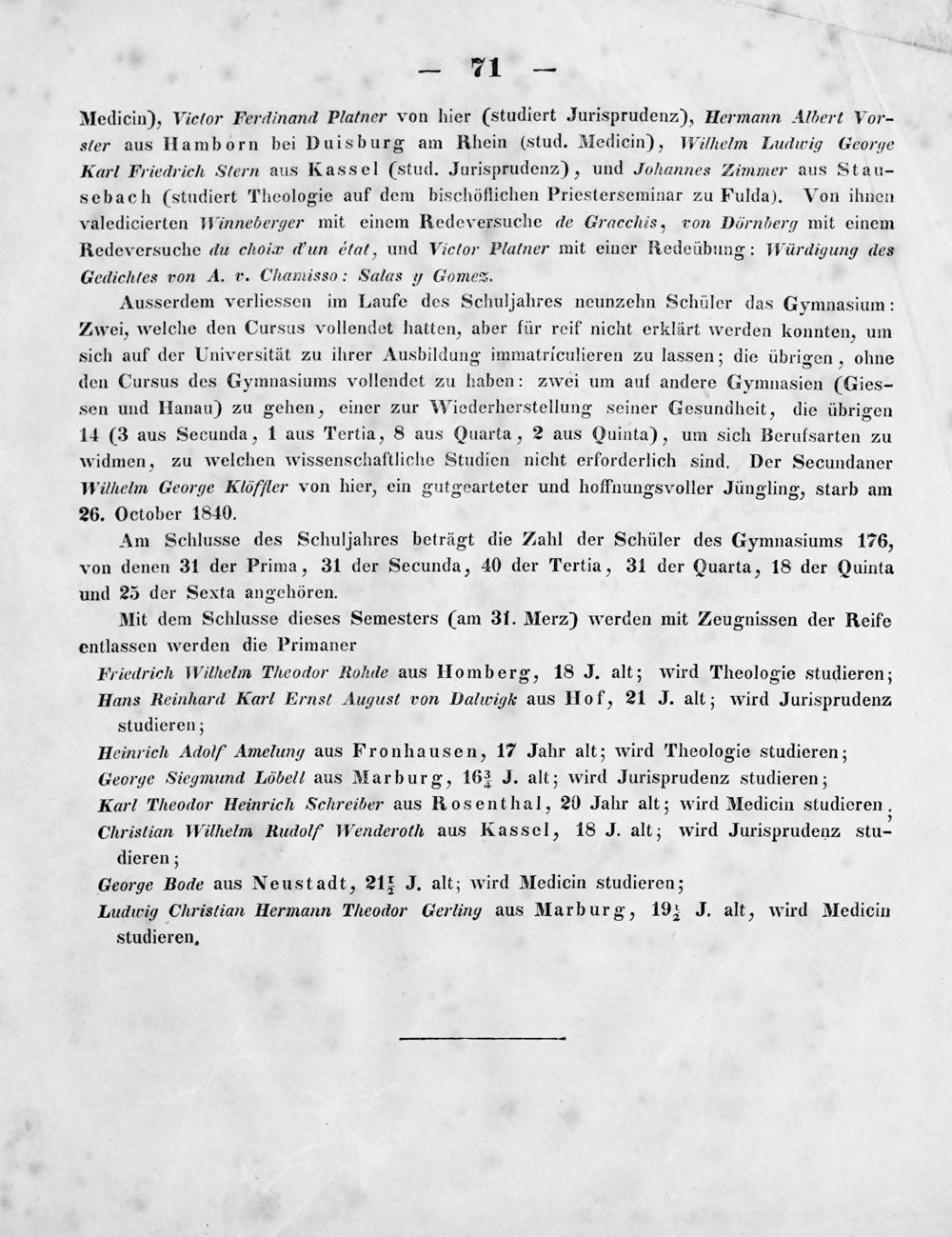 Zu der öffentlichen Prüfung der Schüler des Kurfürstlichen Gymnasiums zu Marburg im Jahre ... ladet ergebenst ein der Gymnasialdirector