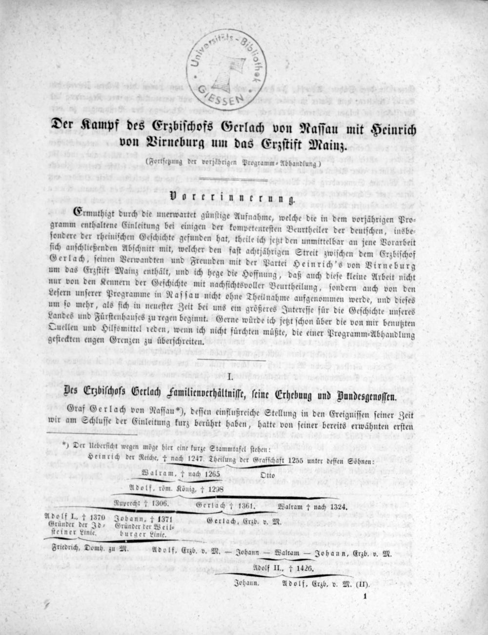 Der Kampf des Erzbischofs Gerlach von Nassau mit Heinrich von Virneburg um das Erzstift Mainz. (Fortsetz. d. Progr. v. 1861.)