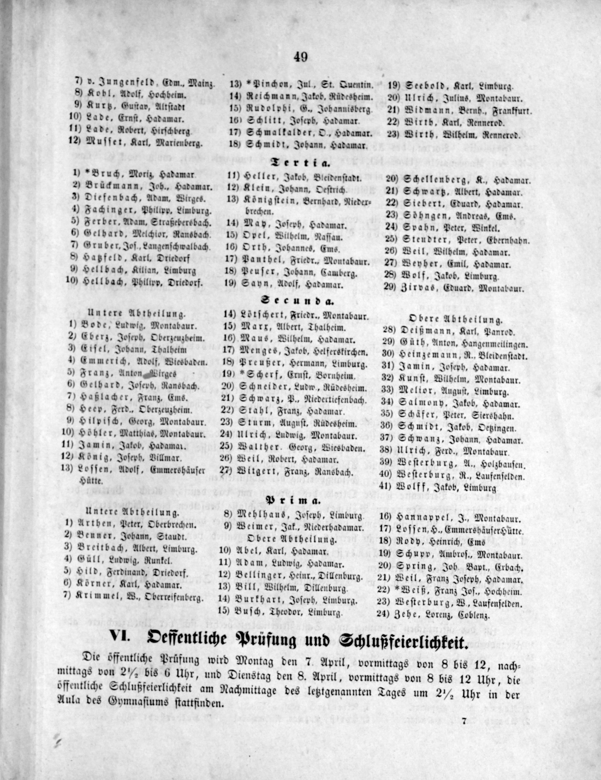 Programm, mit welchem zu der öffentlichen Prüfung & Schlußfeierlichkeit des Herzoglich Nassauischen Gymnasiums zu Hadamar auf den ... ergebenst einladet