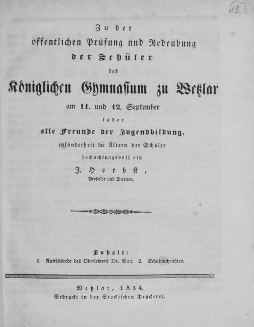 Programm des Königlichen Gymnasiums zu Wetzlar