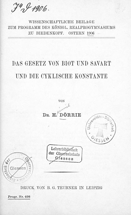Das Gesetz von Biot und Savart und die cyklische Konstante