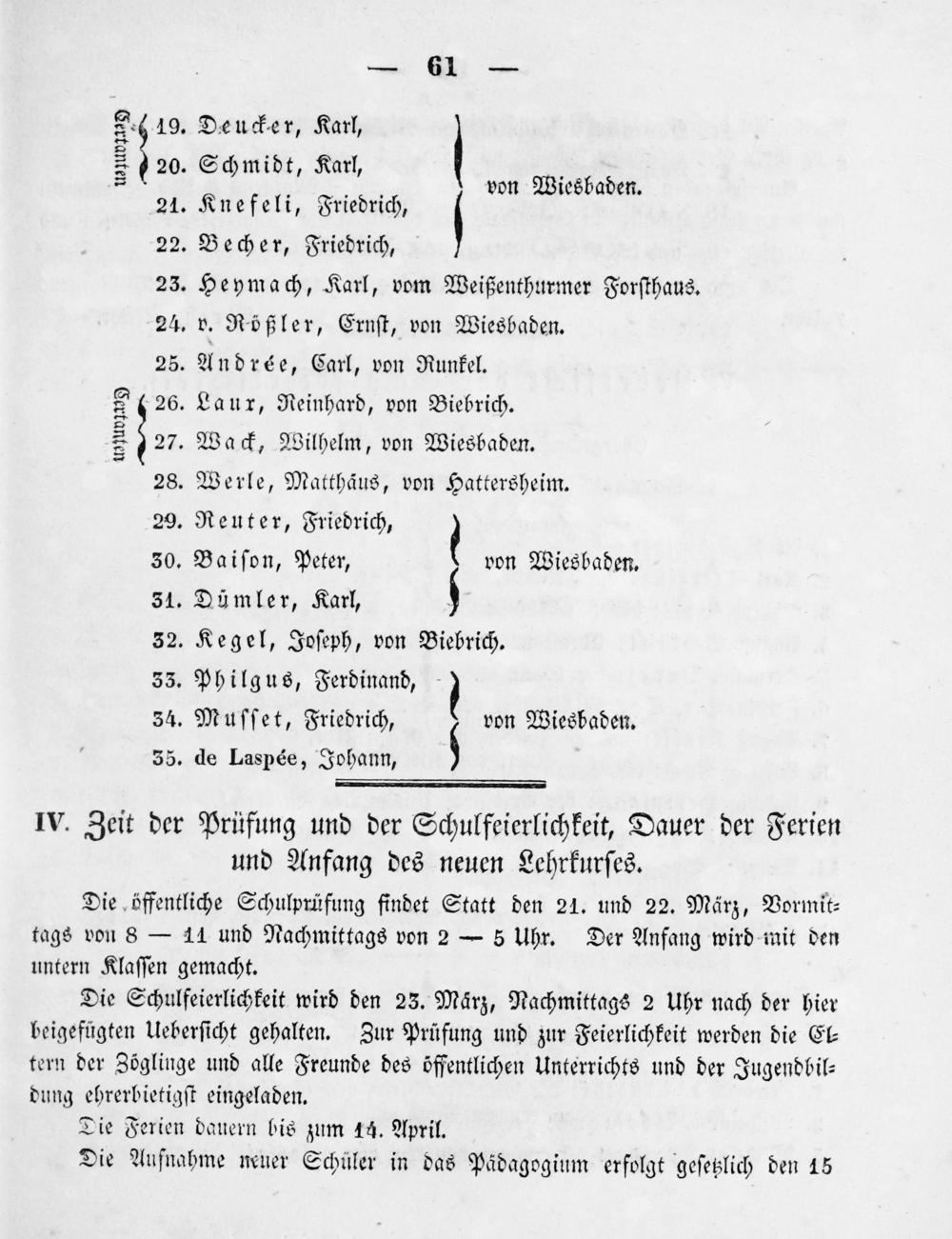 Ankündigung der öffentlichen Schulprüfung des Herzoglich-Nassauischen Pädagogiums zu Wiesbaden