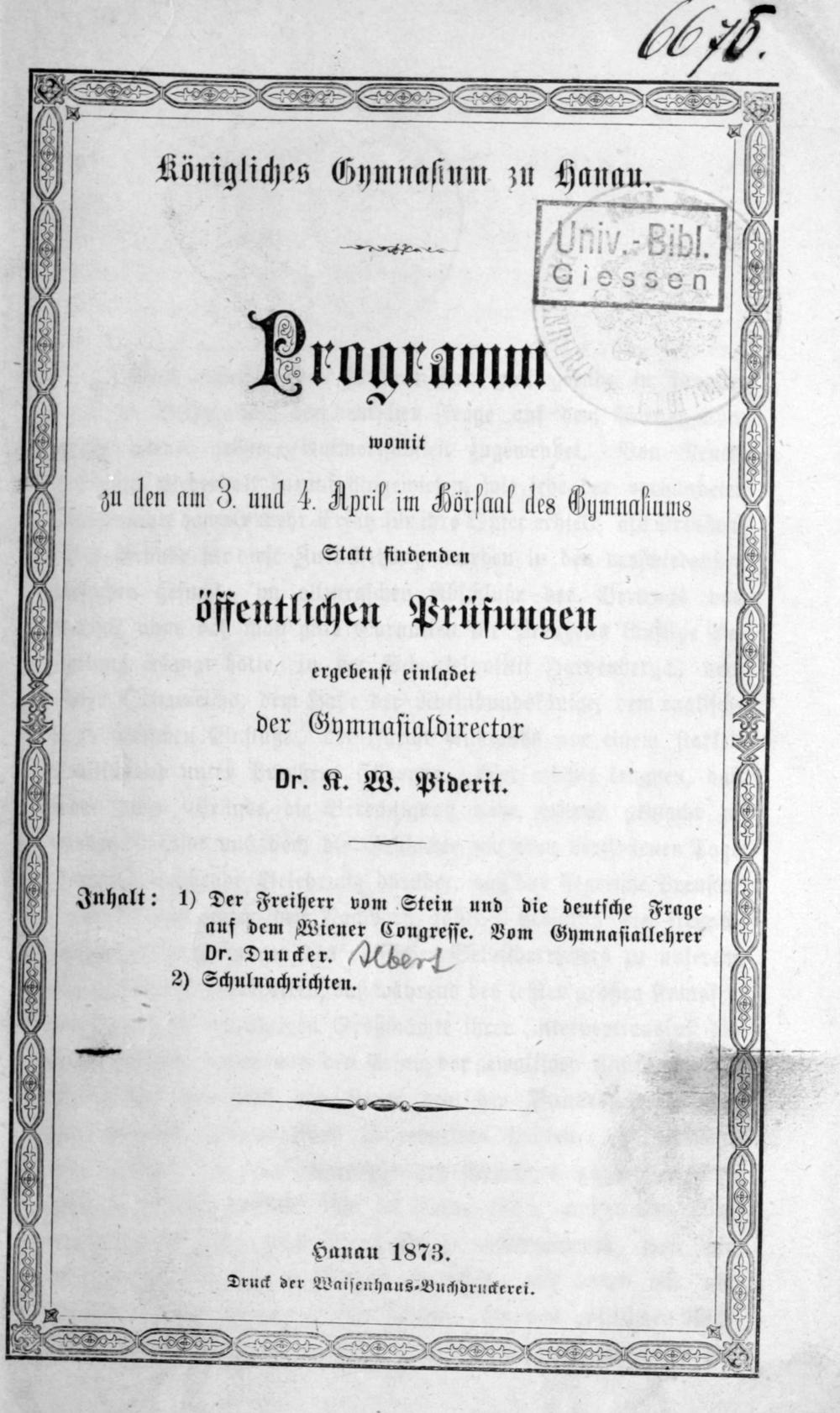 Der Freiherr vom Stein und die deutsche Frage auf dem Wiener Kongress / vom ... Duncker
