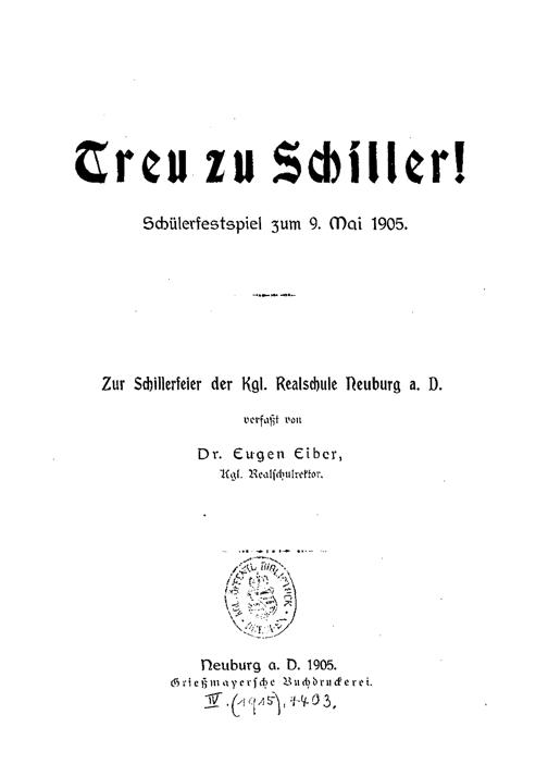 Treu zu Schiller! Schülerfestspiel zum 9. Mai 1905