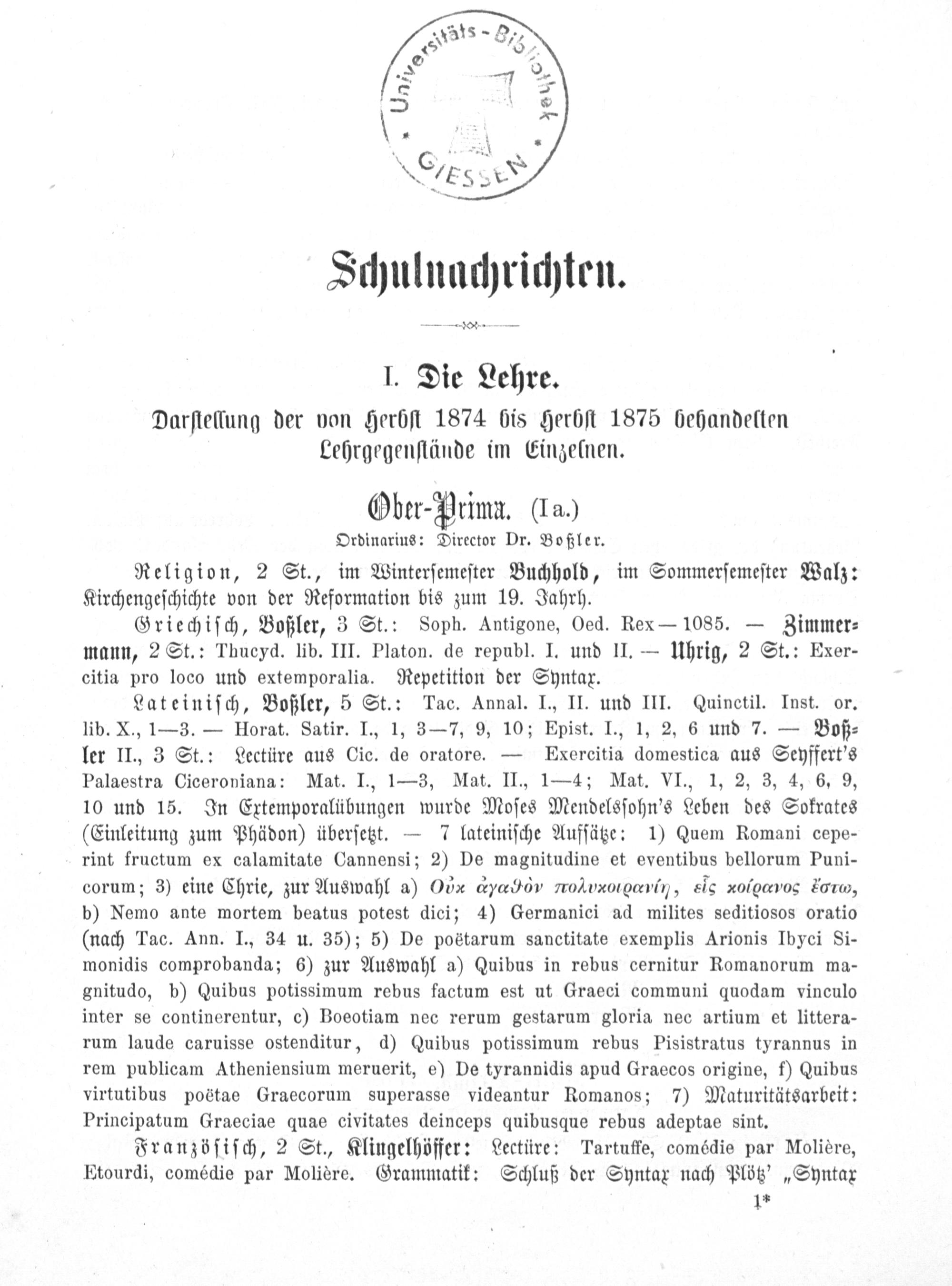Programm des Großherzoglichen Gymnasiums zu Darmstadt